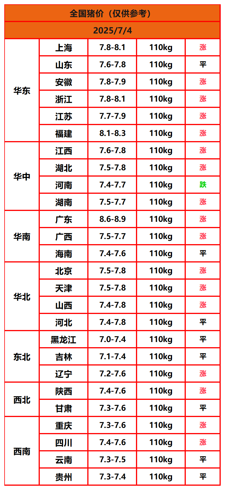 今日猪价 | 2025年7月4日全国猪价行情一览表!