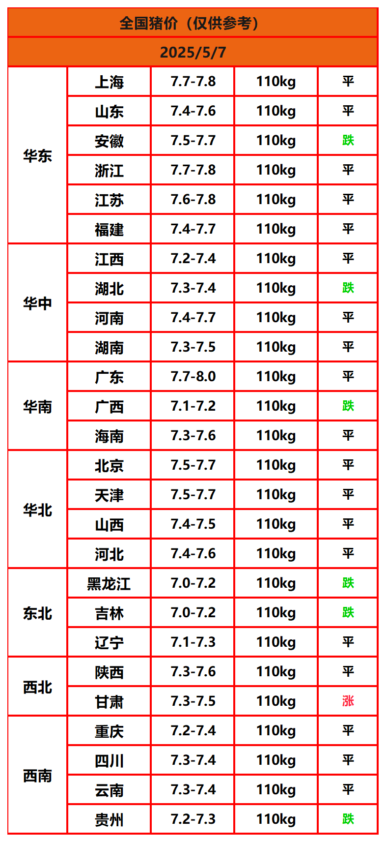 今日猪价 | 2025年5月7日全国猪价行情一览表!