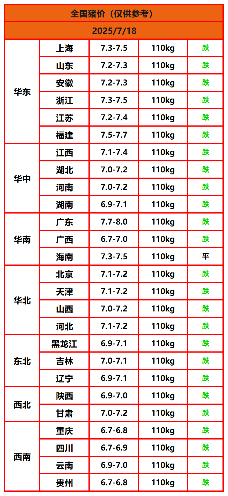 今日猪价 | 2025年7月18日全国猪价行情一览表!