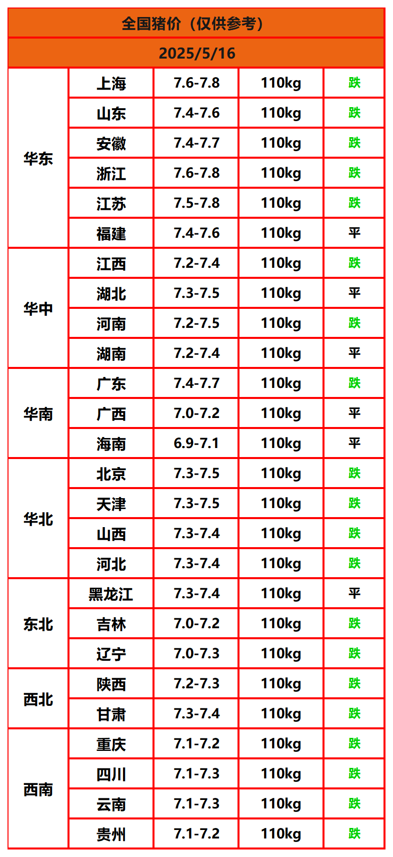 今日猪价 | 2025年5月16日全国猪价行情一览表!